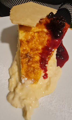 4º Tarta de queso.⭐️⭐️. Precio descuento (4,9€). Precio en carta (7€). Otro de los platos salvables del día. A pesar de que odie los frutos rojos en una tarta de queso. Tenía su puntito de cremosidad y buen sabor.
