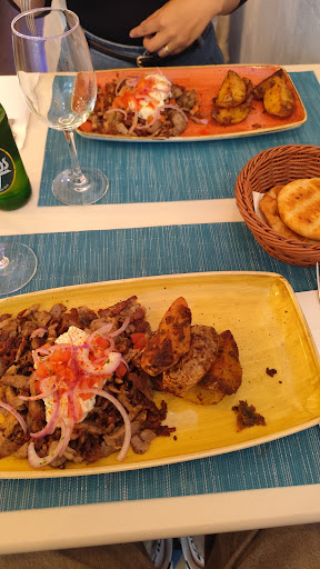 My friend and I both got the gyros plate, valued at 16€ and we both wish we hadn't. Firstly, it's not an actual gyro, more so a plate with the smallest, overcooked chunks of meat with the tiniest amount of tzatziki on top and a total of 5 potatoe wedges on the side. The meat was cut too finely and felt overcooked but the lack of a decent amount of tzatziki (valued at 9€ if you want extra) made for a heavy meal for the stomach seeing as it lacked a fresh element. Meanwhile the potatoes were good but the plate was too big for the small portion they gave us.