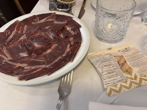 Read moreWe found this restaurant after watching corrida de toros. It’s exciting that they have English menu. We ordered Iberia ham, grilled pork, oxtail timbale and cheesecake with violet ice cream. All are unbelievably good. It’s sad that we haven’t discovered this restaurant earlier. The nutty flavor and creamy taste of ham are prominent. Oxtail can easily melt in mouth. Though the pork is a bit too resilient, it’s still well-seasoned and impressive. I also want to add that cheesecake is always perfect with raspberry jam. Also, the violet ice cream has fairly interesting taste. The price is not cheap but definitely matches the quality. The restaurant is quite crowded and noisy at night, which is the only thing I...