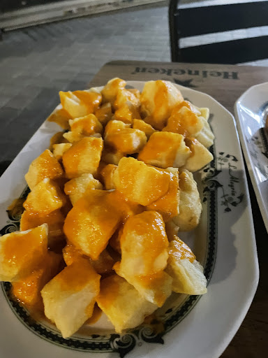 La atención pesimo madre mia y encima pedir 4 cositas tardan lo suyo en traerlo y tampoco esque habian tantas personas, el camarero pareciera que le molesta todo, te atiende de una manera que yo a ese sitio no vuelvo ni lo recomiendo. Al llegar al sitio nos sentamos en una mesa luego se desocupó una mesa como mas hacia las esquinas donde no habia gente ya, y decidimos mudarnos cn mi amiga porque hacia menos calor a lo que el camarero nos dice del porque nos mudamos que le vamos a dar mas viajes osea yo me quede flipando la menera que estaba reprochandonos por mudarnos de mesa, ya casi me fui pero como ya habia pedido las patatas bravas y las croquetas no quise hacer el feo de irme, luego nos trae los pedidos y las croquetas sabian super raras a aceite quemado y las patatas sabian como rancio igual como a aceite muy usado. Las croquetas carisimas y encima al morder me encuentro una cosa como sin cocinarse bien en la foto de abajo lo he dejado para que lo puedan ver. Le pedia las bebidas y para traerme una coca cola paso como 15m y no nos hacia caso a lo que tuve que acercarme y decirle y devuelta espere otro rato hasta que alfin me trae la bebida. Al momento de pagar lo que nos monta el señor mayor porque no pasaba la tarjeta y me quiso cobrar 35€ y yo diciendole que el precio lo estaba poniendo mal y el ahi tratandonos y diciendonos que ni dinero teniamos no se que. En fin las patatas ni la tocamos super caro y la atención de verdad deberian mirar el personal que llevan porque parece que el camarero esta enojado cn la vida y le molesta su trabajo y atender a la gente. Me senti estafado con el precio almenos si la atención hubiera sido diferente lo dejaba por alto pero...