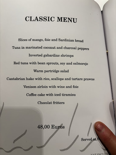 Read moreHad the Tasting menu and found it to be an incredible value given the generous food portions and quality of dishes served. The 9 course meal started off with an amuse plate of lightly fried shrimps, followed by shaved tuna with wasabi, fried battered red prawns, half grilled prawns, tuna belly with black garlic aïoli, Corvina with mushrooms tomato confit (full portion sized fish), puff pastry with partridge, and dessert consisting of a french toast brioche, passion fruit ice cream chocolate fritters. Wines were also reasonably priced as we had a lovely bottle of Unzu rose. Service was attentive and friendly. My only complaint is that the initial five dishes came out a bit too fast, as we barely finished the earlier dish and was still discussing it before the next...
