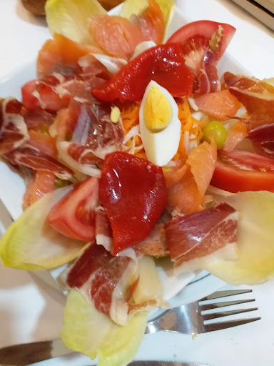 Read moreWe just stepped into on our way to find the way a restaurant on our list. It was surprisingly good traditional restaurant. Very pleasant lunch time, attentive service, enjoyed full course without rush. Hearty home made food well prepared & organized service(daily menu 15E on Weekend) many choice of primero, segundo & postre, bread, drink inclueded. (entrée, plat & dessert inc. Pain et boisson). Coffee is excluded. Not pretending gastronomy no fancy salty sauce. Well balanced and natural taste of fresh ingredients The portion of appetizers are big. We were happy with vegetables. The main we ordered two different fish were excellent, very fresh also the side potatoe was delicious. I like the steamed potatoes. Dessert were excellent, home made flan was very light & mine was tarta de Santiago (almond cake) Thank you for the staffs at restaurant!