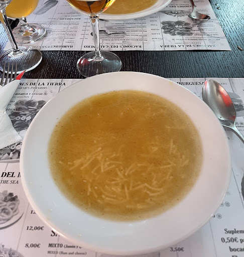 Tienes la opción de elegir entre los platos del menú del día o el cocido que hacen los miércoles, pudiendo además elegir un primero distinto a la sopa del cocido o un segundo diferente al cocido. Nosotros elegimos de primero sopa de cocido y de segundo el cocido. Estaba buenísimo todo.