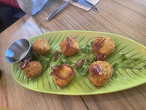 Read moreLocal atractivo con muy buen servicio por parte del personal (no son profesionales del todo, pero si muy amables). Es el típico local que puedes hacer de todo, cenar, tomarte una copa etc. A mí no me apasionó, ya que creo que nos hemos acostumbrado a pagar por cosas que no lo valen. Se come bien, pero actualmente creo que se come bien en muchos sitios, la cocina ha evolucionado mucho así que cada vez valoramos menos una buena materia prima. Este local está hecho para probar sus carnes al carbón, creo que ahí puede haber más calidad, de hecho el secreto que pedimos estaba muy bueno. El resto no me dijo nada especial, raciones normales de tamaño (súper escasos en los aliños que traen) y poco más. Bien presentado todo y muy decente, pero no me apasionó. Las costillas bbq me supieron igual que si las hubiese comido en un burguer King, sobrevaloradas. De precio es lo que se suele pagar ahora, si comes para compartir sabes que lo vas a sufrir en la cuenta final. En fin, por probar no pierdes nada, es un...