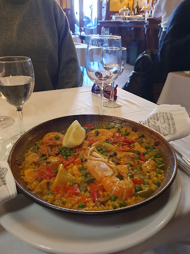 Read moreI guess it's standard in Madrid that they don't speak any English in restaurants, but anyway it's pretty weird for such a big tourist city. This restaurant has a charming atmosphere, I really liked the old interior. Although the constantly flashing lights are quite annoying after a while. The service was nice, although they had quite a lot. I joined my family who had lunch there a bit late, and didn't get the tapas they were giving everyone as I observed late. I ordered the seafood paella, it was tasty but not exceptional. The spaghetti bolognese was without parmesan cheese. The portions were reasonable...
