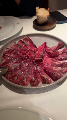 Lana was without a doubt a perfect restaurant experience from start to finish. From the very moment I stepped through the door, I was welcomed with warm smiles, genuine interest, and exceptional hospitality. After being seated, I was invited to the meat showcase, which is a signature moment of the Lana experience. You personally select your cut from an array of beautifully aged meats, setting the tone for the meal ahead. Once the meat is chosen, the rest of the menu unfolds around it. We started with several standout appetizers. The chorizo made from pork cheek and a delightful chicken pâté bite were both exceptional. Even the bread was unforgettable. A rich, buttery creation with the butter baked right into the dough, making every bite warm, soft, and indulgently satisfying. The Dry Smoked Angus Rump Cap Cecina was absolutely out of this world, rich, delicate, and deeply flavorful. Among the highlights of the evening were the Rib Lana Selection Tartare, the Suckling Lamb Kidneys, and the Sweetbreads. Each was among the best I have ever had. Every dish was precise, well balanced, and full of character. The quality of the meat was extraordinary, but what truly elevates the experience is Martín, the owner. His personal involvement and deep knowledge of each cut of meat make a real difference. He takes the time to guide you, answer your questions, and ensure that you choose the perfect option tailored to your taste. Equally impressive was Federico, the sommelier. His wine knowledge is encyclopedic, especially regarding Argentine labels. Lana’s wine list is exclusively Argentinian, and the range is breathtaking, showcasing every major region in the country. Federico listened attentively and curated the perfect pairings for our taste, each bottle enhancing the meal beautifully. We enjoyed our dinner at Lana so much that I returned the very next night, this time with my wife. On the first night, I dined alone and was already impressed, but the second evening became even more special. It was nearly impossible to find a table on such short notice, yet by some incredible luck and thanks to Martín’s kindness and effort, we were able to return. It turned out to be one of the most memorable dining experiences we have shared together. In every sense, Lana exceeded expectations. This is not just a restaurant. It is an experience of warmth, passion, and culinary excellence. If you ever find yourself in Madrid, make Lana a priority. You will not just eat. You will...