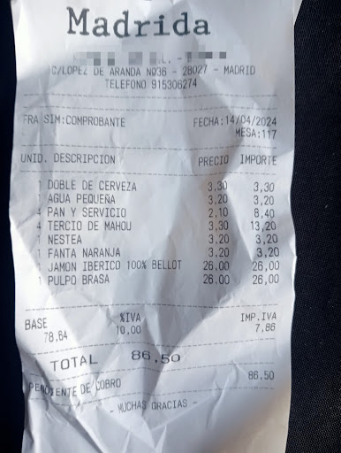 Read moreA hidden gem in Madrid – amazing food and top service! We stumbled upon Madrida during our trip to Madrid, and it turned out to be an absolute hidden gem. The food was delicious – every dish was full of flavor, fresh, and beautifully presented. What really made the experience special was the staff: super professional, kind, and attentive. The atmosphere is so welcoming -we loved it so much that we came back three days in a row! If you’re in Madrid, don’t miss Madrida – it’s one of those rare places you’ll be...