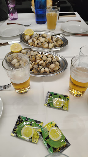 Restaurante familiar. Pequeño dentro, con una sala en sótano pequeña pero muy bien. Arriba, es un poco estrecho. Pero una vez sentado, no se nota. La terraza fuera muy maja. El trato es muy bueno. Te aconsejan con sinceridad. Si tienen algo de normal, pero ese día no, te dice que se ha acabado o que el producto no les parecía bueno al comprarlo. Y aunque tienen mucho trabajo, van a buena velocidad y atienden muy bien. La carta no es grande. De primero puedes comer todo lo que tenga cáscara, que está buenísimo: navajas (si tienes suerte y hay), mejillones, coquinas, berberechos, nécoras. También hay gambas, que aunque ricas, son blancas (yo prefiero rojas). El pulpo está muy bueno también... De segundo, aunque hay merluza, siempre pedimos carne. Roja. Hecha como pides. Muy muy rica. Y tienen costillas, pero me falta probarlas. Como acompañamiento, suelen sacar patatas fritas. De casa. Tú no las haces mejor... te lo aseguro. Y también hay tomate, que depende del día. Pero el aceite que usan es rico y es un buen punto. Vino, poco para elegir. Tanto tinto como blanco. Pero suficiente y aunque desconocido el de la casa, está muy bueno. Postres... no llegamos a pedir. Lo siento. No puedo decir nada.