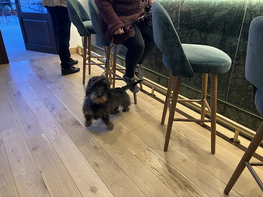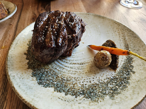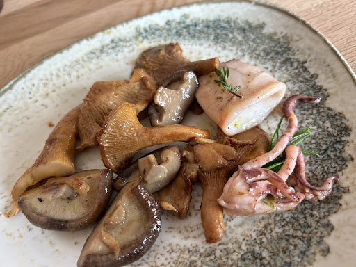 Read moreFuimos a comer el domingo 21/04/24 tres personas con nuestra perrita y fue un acierto. La terraza es amplia y luminosa, con un techo que (supongo) se podrá abrir. Buen servicio, amable y atento. Sin pedirlo trajeron un cuenco con agua para nuestra perrita. Las croquetas de carabinero muy buenas, no así la ensaladilla (con pimiento y piparras sin avisar); de ahí la puntuación de solo 4 estrellas. Interesantes los puerros a la brasa, magnífico el arroz con rape y marisco y excepcional el solomillo de vaca madurado, perfectamente entregado según lo solicitado, casi crudo pero caliente, y además una pieza bastante gruesa (unos 10cm) de una carne de magnífica calidad. Otro buen detalle: se equivocaron con el caldo del arroz y nos trajeron otro aperitivo para amenizar el retraso (unos 10'), sin solicitarlo y a cuenta de la casa. La panchineta de postre no es de lo mejor (demasiado fría y el hojaldre algo húmedo), y desentona un poco entre los demás platos. El precio nos pareció acorde a la calidad. Volveremos, sin duda. No es fácil encontrar sitios así donde además puedas ir con tu mascota. Como punto negativo, el respaldo de las sillas me pareció...