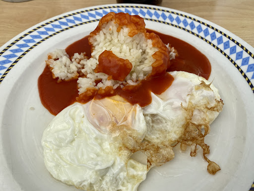 Del día que he podido probarlo tengo que decir que: El señor que nos atendió, muy majo para que nos sentásemos en terraza y buen servicio. La comida y precio ya no tanto. Pedí arroz con tomate y huevos (un arroz a la cubana). El arroz algo duro, mal echado en el plato y un huevo algo seco según se ve en la foto. De segundo un codillo guisado con poca carne y mucha grasa, col que estaba buena y un puré de patata que me dejé entero porque era incomible, no supe sacar el sabor que tenía. La otra persona se pidió un arroz de marisco, recomendado por el camarero porque decía que era muy bueno y que lo traían de uno de sus restaurantes que era típico español , pues bien, apenas tenía sabor el arroz y de segundo pollo rebozado que estaba algo seco. De postre una tarta de queso con poco sabor también. En total 15€ por persona el menú en terraza. Tengo muy claro que no...