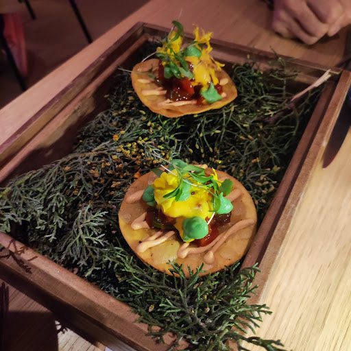 Yugo (Tartar de atún): sabor a ají con mezcla de cilantro. La salsa increíble, el sabor a cilantro daba un toque especial (me gusta el toque de cilantro que les da a algunas comidas). La pega que pondría es que por su precio creo que la cantidad es muy poca. Sirvieron dos minitortitas (tamaño de un nacho redondo) que con dos mordidas lo acabas, recomendaría poner algo más para compensar el precio 14€ (7€ por unidad) Valoración: Sabor: 5 - Cantidad 3 - Calidad:5 - precio el relación calidad-cantidad: 3,5
