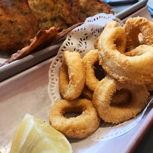 Read moreReserva para 8 personas el domingo a las 14:30, llegamos a las 14:20, cuando llegamos dicen que la reserva era para las 20:30. Nos adaptan una mesa moviendo a personas de mesas para acomodar a todos. La mesa mal montada, faltan cubiertos y algunos vasos, debemos pedir que nos lo traigan. Traen pan para 5, luego 2 más, falta uno, reclamamos. Para beber vino para 2 , agua, 2 coca-cola y 2 "tercios de mahou" , en la segunda ronda ya no tenían mahou, estrella galicia o grifo, ¿sea food and BEER? la BEER no está y no se la espera. Cuando sirven la bebida olvidaron uno de las cervezas, RECLAMAMOS. Pedimos calamares, croquetas, pulpo a la gallega y gambas a la plancha de entrante, los calamares los sirven a las 14:40, las croquetas a las 14:50, el pulpo a las 15:00 y las gambas a las 15:10. Aceptables las croquetas y los calamares, el pulpo sin sal y duro, dejamos varios pedazos, y las gambas ridículas para el precio. A las 15:21 traen arroz con bogavante para 2 de los presentes, los demás miramos como comen hasta que a las 15:35 sirven los segundos de los otros 6 comensales. Pedimos un chuleton que no quedaba, lo cambiamos por "lomo alto de buey", el grosor de la carne fina, la sirven bastante echa sobre un plato caliente donde se cuece más, tenemos que cambiar a otro plato para que no se transforme en la suela de un zapato. Lugar con 13 mesas, 44 posibles comensales, servicio lentooooooooooo, 2 camareros de sala y una en la barra, la de la barra tiene que salir a ayudar a las mesas. Platos con desperfectos, manchas de serpentinas naranja en el techo y manteles de papel individuales, todo poco acorde con el precio.