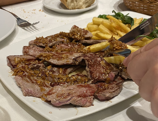 We went there for dinner and first of all, we never received any menu. We just ordered without knowing any prices. The staff was quite friendly and helpful but he brought us way too much food and we had filled our bellies to the brim. The food was ok, not great but ok. The only large downside were the prices. We guessed they would be average but they were quite pricey. 25 euros for an overdone steak, 15 euros for a plate with some sausages and meat and some croutons......