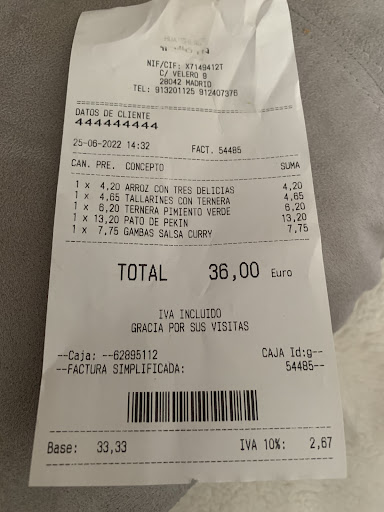 Read moreRestaurante de comida china de barrio, sin pretensiones. Entre diario suele estar vacío y se nota cierta sensación de dejadez; por el contrario, algunos fines de semana se llena y conviene reservar, lo que puede ser un desastre; ya tres veces mi familia y yo nos hemos encontrado hacinados porque no han dispuesto suficiente espacio (por poder meter más gente a comer, supongo) o hemos tenido que comer separados. El servicio es lento y no demasiado amable. Ciertas cosas del restaurante necesitan mantenimiento, como los manteles que están hechos jirones o la tapicería de las sillas, bastante sucia. La calidad y el precio de la comida entran en lo que cabe esperar de este tipo de lugar: sabroso y barato barato. Pero eso se puede encontrar en otros restaurantes chinos mejor...