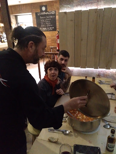 4 platos a elegir, un bar restaurante sin comida, estupendo. Un par de entrañas y los berberechos, y una carrillera llegan. Platos enanos, precalentados y caros. Nos 'invitaron' al cafe, pero no nos dieron la cuenta. 100 euritos que se llevan, y encima vacilando. Parecian que estaban jugando en vez de trabajar. Mas preocupados de esconderse nose para que en corrillos antes que servir a los clientes. Me dedico a la hosteleria desde hace 15 años, y nunca vi nada parecido. Yo vengo de viaje y pagué por comer para salir de alli empapada en vino dirección a otro bar cercano porque moriamos de hambre. No vayais; es una perdida de dinero,...