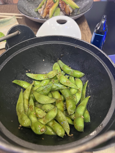 Nada más entrar, te atienden muy servicialmente y te sirven un aperitivo cortesía de la casa. Nosotros pedimos unos edamame a la parrilla y una tempura variada para compartir la tempura. Estaba exquisita, crujiente y la ración era abundante.