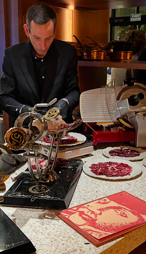 We went on a Saturday and the restaurant was empty. It quickly filled up afterwards. We ordered a mojito and croquetas with cheese and jamon. These were very good and home-made (I think). Then we went for an entrecôte and a piece of matured meat. A bit pricey but it's supposed to be a very good piece of meat. Both were very very chewy and lacked flavour. I was very disappointed because you can find a better piece of meat in a BAR. Service was ok but I think they had a misunderstanding, one waiter took our order for the drinks, another for the starters and another for the main. So we received the starters and it was very pleasing but before we could finish. The main dish arrived. The croquetas were very good, the meat was NOT. The...