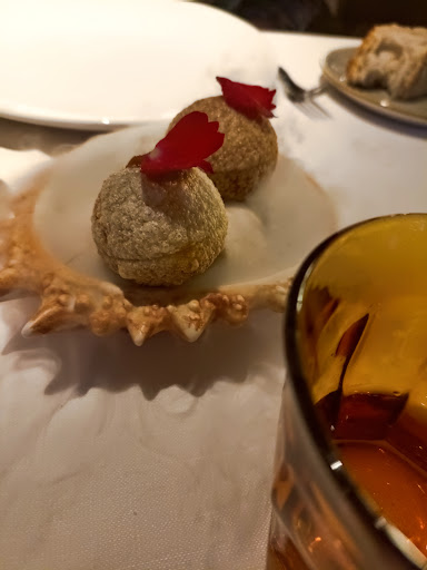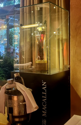 It's always a shame when you come away from a restaurant thinking more about the staff (one in particular) than the food. The food is very good, and the wine. Although I'd recommend ordering your steak a level higher than usual because the medium-rare was very rare. But the maitre'd... either he doesn't enjoy his job, or his tight suit is uncomfortable, or something else is putting him in a permanently gruff mood with his clients. And don't try to ask him for something once he's seated you. Ooooh no. And it rubs off because there seemed to be few smiles from the rest of the team. The ambience echoed this seriousness with €1,700 whisky on display in a single glass cabinet. So maybe we hit a bad day at the office. Like I said, the food is good and the setting is great, so it's worth a visit for...