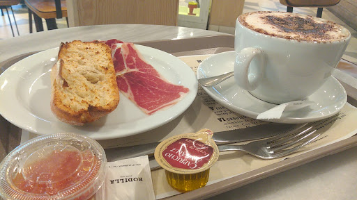 Mi desayuno de 2 samdwich frios con un refresco fue una pena; entraban refrescos y zumo de naranja natural y como el zumo me sienta mal por las mañanas decidí tomar refresco, pero no puedes elegir ya que solo había cocacola y no cualquiera sino cocacola normal y punto. Elijo Coca-Cola normal, sándwich de jamón serrano y otro de mascarpone y trufa (tengo q reconocer que voy mas amenudo a rodilla x este segundo samdwich) y para mi sorpresa me dicen que siendo las 10 dela mañana tengo que esperar a que hagan mas de trufa, asique acepto ya que estaban las 2 camareras solas para mí desayuno y el de la siguiente y última señora dela cola. 5minutos. Tiempo "razonable" para el trabajo que se veía. Mi acompañante pide un desayuno de barrita con café largo y le preguntan si la desea de pan normal o de cereales, asique elegimos de cereales, pero hay que esperar otro poco mas a que suban el pan. OK. Ya sin gente en la cola tardaron 10 minutos de reloj (porque lo cronómetre ya que teniamos prisa) mas luego hacer la tostada, el café ya estaba heladito, hubiesemos devuelto todo pero emtre espera y espera yo me tomé el samdwich de jamón. Otra cosa es que no me gusta que entren indigentes a pedir por las mesas, mi opinión es que deberian de prohibirlo; no estoy totalmente en contra si se acercan a pedir y tienes la palabra del "si o del no" pero ya cuando insisten y hasta te intentan coger el vaso dela Coca-Cola para que se lo des, no me parece agradable y hasta me sienta mal la comida. De momento...