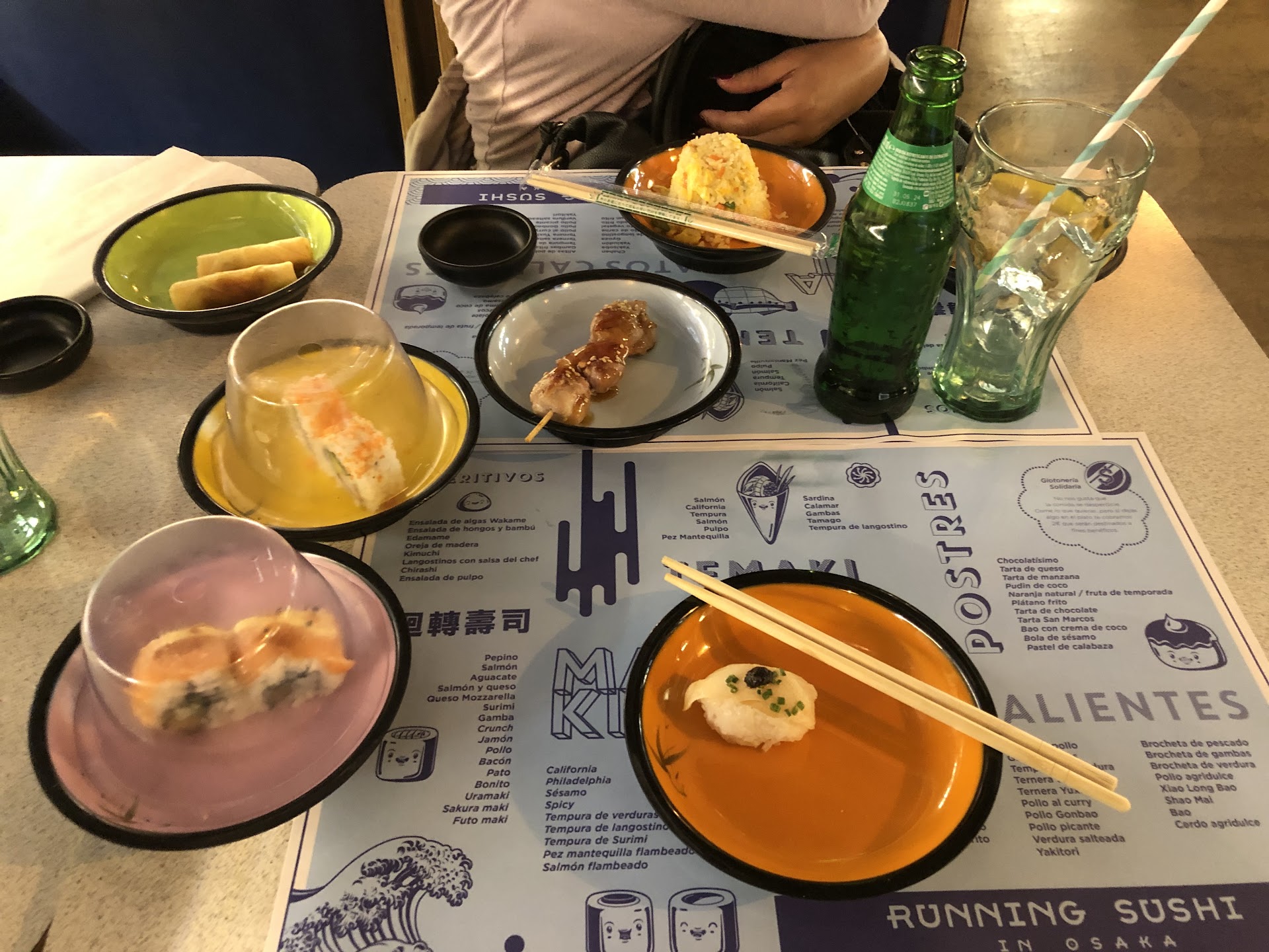 Además de poder escoger el plato que prefieras, dispones de dos cintas para coger tu plato preferido. La cinta de arriba son de platos calientes y la cinta de abajo son platos fríos. Me ha gustado bastante este punto ya que es muy buena idea separar los platos fríos y calientes. Así puedes escoger que plato deseas más.