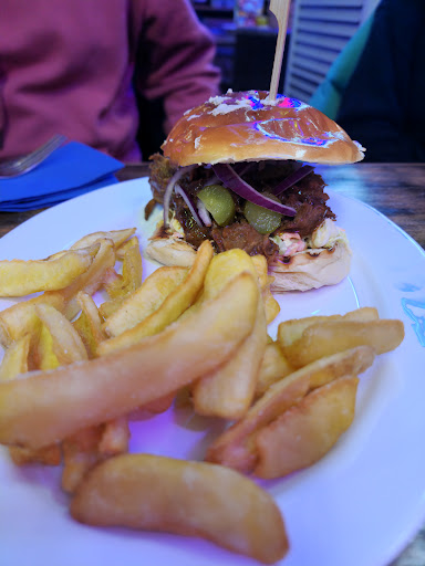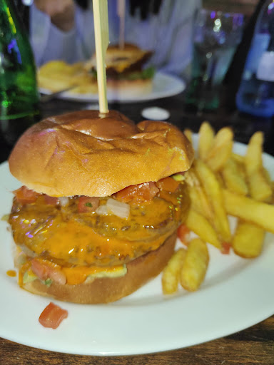 Read moreNunca me han llamado la atención sitios de este tipo pero es verdad que me ha sorprendido mucho y positivamente. De entrantes lo que me encantaron fueron las alitas de pollo, muy buenas y la salsa picante buenísima (chipotle) que recomiendo si os gusta el picante; un poco decepcionados con los aros de cebolla, que pensábamos que iban a tener más "rock and roll", a penas había 'pulled pork" como se presentaba en la imagen de la carta y no es algo excepcional que digas que es necesario probar. De hamburguesas tuve la suerte de probar dos, cada una acompañada de una buena raciónde patatas: -Boston: si te gusta la carne y una buena salsa esa es la tuya, además la cebolla caramelizada le daba mejor sabor. New Mexico: yo lo pedí con carne de angus y, aunque sí que es verdad que me enamoró el sabor de la salsa búfalo que llevaba la hamburguesa, me faltó ese 'sabor picante' que prometían en la carta con el emoticono del fuego 🔥. Pero en general un escándalo lo buena que estaba, jugosa y muy bien preparada. De postre pedí cheesecake que dice ser 'cremosita' y se me quedó demasiado pobre de sabor y de cremosidad.