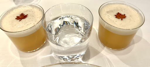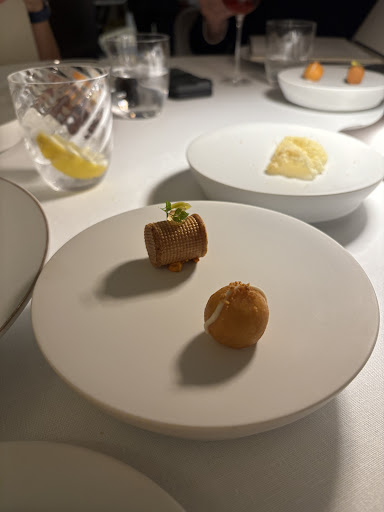 I had the wine maridaje for an extra 120 euros, an above-average price, which did raise my expectations. However, while some of the wines were exceptional, not all were outstanding. And the pours were miserly. What was particularly disappointing was that there was only one red wine served, a Contino Viña del Olivo which they served in droplets adding up to not much more than a sip, as if they were pouring a 1945 Latour. To add to the disappointment, a Coravin malfunction resulted in the gas splattering the inside my entire glass with tiny droplets, leaving it looking like a bloody murder scene. They did not offer to change the glass.