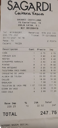 Read moreExcellent service! We were a group of around 15 people (with a reservation of originally 10 people). They were very quick to accommodate all of us at a larger table. Once we got there, and began ordering, they suggested an option for their to cater a menu for us so everyone could try a bit of everything. Their selection was excellent! We got to try everything from vegetarian dishes, fish dishes, to the best chorizo appetizer ever. Apparently their chorizo has won awards in Spain. Pretty impressive! And I can say, it did NOT disappoint! Highly recommend Sagardi Castellana for both top-notch...
