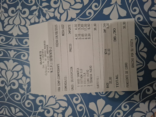 Read morePrecios caros, las cantidades no estaban acorde a los precios. La ubicación cercana al estadio del Atlético de Madrid, lo más destacable. Buena atención, aunque la chica que nos atendió, estaba bastante despistada, quiso retirar platos de la mesa y bebidas sin haber terminado y estando aun comiendo. Una jarra de tinto de verano, normal, que serian 33cl nos cobraron 4 euros y una cerveza tostada 0.0, nos cobraron 3,15 euros.