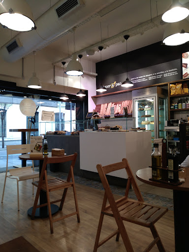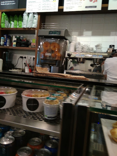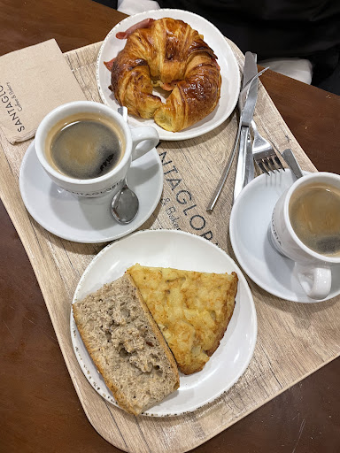 Stopped here for lunch after visiting the National Library close by. This branch of Santa Gloria is a great place for a quick coffee and lunch. Never having been in this chain before, I see that this branch has a wide selection of sandwiches, croissants, salads, pastries and other basked goods. I don't speak any Spanish, but the staff were patient and made every effort to be helpful. Eventually I got a Cafe con Leche, Tortilla de Espanol and Churro. The tortilla was excellent and just how I always imagined it should be. Just the right amount of seasoning. The interior, cooked, but not overcooked, leaving a slightly runny centre of egg. The coffee was excellent too.