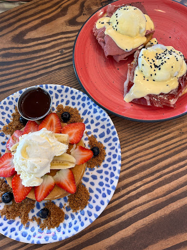 Read moreFor our US friends : This is a tourist trap! A shame for the European food chains! I'll explain: Everything is OVERPRICED and low quality! Prices not at all justified by the quality of products. Asking 9 euros for a "Benedict egg" which is actually - really 1 single egg on a burger bread with 2 thin slices of salmon. Price of production is maximum 3.5 euros. DYI at home, you'll be more satisfied. The eggs are UNDERCOOKED. I repeat what others said in the comments : do not take eggs cause you will eat raw whites! (See the photo) We had to ask to recook the egg, it was that badly made. The waiters are friendly but most probably over-working. It would be helpful for them if the director would hire an extra waitress. But hey, they do a shatloads of money for overpriced services so surely the director don't give a X. Make sure to double check the final price of your total command : we had the surprise that they charged us 20 euros more - they refund us by cash but still. Tiny pastrami sandwich for 9 euros....