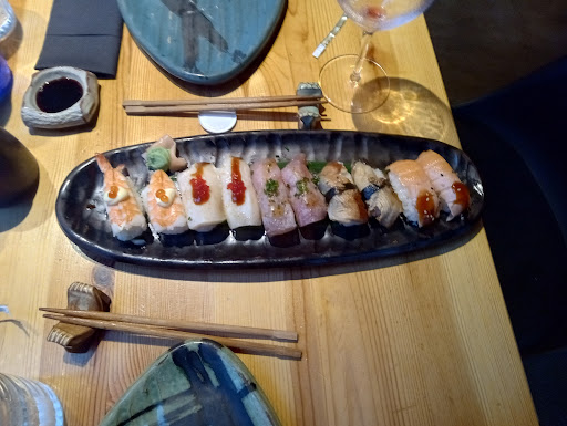 I went as soon as they were open in the evening (8 pm at the time of this review). Our waitress, Sandra, was so very sweet and patient as we went over the menu (both the English and allergen menu) to order our meal.❤️ We ordered a pitcher of sangria that was so refreshing! And not too strong for me (I am a very light drinker)! We had chicken skewers, BAO buns, udon (yaki soba style) and a platter of Nigri lovers sushi 🍣. Everything was so very good!!! Afterwards I had a "Death by Chocolate" cake slice!😃 It reminded me of my Grandma's recipe 🥲❤️ it was very good and such a nice finish to a lovely meal! Oh, they had lovely little cards at each setting of small cartoon...