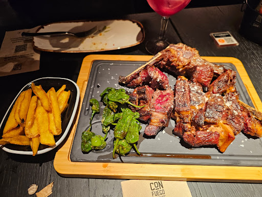 Read moreCenamos un viernes noche pidiendo: Nachos y Chuletón de la Finca. Los Nachos los trajeron fríos y nos trajeron otros. La verdad es que estaban algo más calientes, pero tampoco mucho. Al menos, de sabor estaban bien. El Chuletón estaba de sabor bueno, pero, de nuevo, problema con la temperatura: estaba templada (que no caliente). Además, tenía ternilla (o algo similar) que a mi hijo se le hacían bola. Vamos, que no comía cómodo. Llegué a la conclusión que los platos/pizarra en los que servían la comida no estaban bien calientes, con lo que la comida se enfriaba muy rápido. De hecho, según llegó el Chuletón la pizarra no quemaba. Y ya sabéis que en muchos sitios te avisan que el plato está caliente, aquí no hacía falta avisar porque no quemaba. También, comimos de postre tarta de queso. Buen postre y rico. Aunque lo mejor, la Sangría. Eso sí, has de estar dispuesto a pagarla casi como precio de copa. Conclusión: con toda la oferta gastronómica que hay en la zona, me costará volver. Quizá porque me vea arrastrado. O, quizá, porque vaya a beber Sangría. :) P.D.: no da buena imagen en un restaurante que habiendo tantas mesas vacías usadas, estén sin recoger. Quizá los camareros...