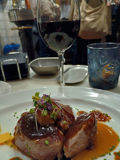 I went at the right time, 7:30 (1930hrs) 10 minutes after I sat down they were turning people away! The waitress was very attuned to customers wants & needs, keeping an eye on people even when it got very busy. I started with a negroni drink which was excellent. The menu is varied and has some superb oddities (for my taste) such as pigs ear; I didn't dare but instead had the pork belly. It came without crackling but it was juicy, tender and came with an interesting and flavourful sauce. With this I had a glass of house red, very drinkable. I followed my meal with a to-die-for espresso. Excellent, thanks.