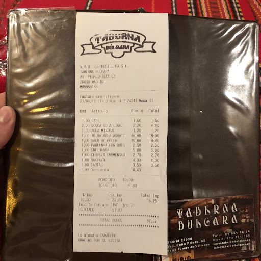 Situado en Puente de Vallecas, la Taberna Búlgara es un local muy conocido de la zona y una referencia en Madrid en cuanto a cocina Búlgara. Un local con un toque distinto, manteles tipo falda escocesa en la mesa y una gran parrilla donde se hacen todo tipo de carnes. La carta es muy muy amplia, y en su casi totalidad Búlgara. Hay platos de mil tipos y se hace complicado elegir. Os cuento mis elecciones: