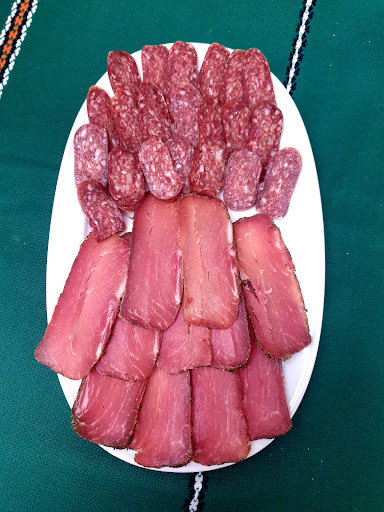 2️⃣ Tabla Asorti [18,90€]. Surtido de Embutidos Búlgaros. Mi favorito el que tiene "grumitos" blancos, me recuerda mucho al Fuet. El que es tipo Cecina también muy rico. El queso de enmedio un tanto amargo (no es el tipo de queso que me guste). En general un plato que aconsejo pedir para probar si sois varios, ya que para 2 se os va a hacer muy repetitivo y encima son 18,90 (como un segundo vamos), aunque el precio está justificado ya que el fiambre es caro.
