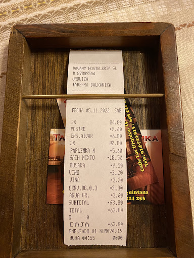 Read more¡Todo un descubrimiento! 🙂 Nada más que entré por la puerta del restaurante quedé asombrada con la calidad y calidez de su ambientación tradicional. Estás comiendo dentro de una bodega en pleno Pueblo Nuevo... ¡qué contraste más acogedor!👌🏽 La atención de su personal me sorprendió también desde el inicio porque fueron muy cercanos y atentos y me gustó que "perdieran" tiempo en ayudarnos a escoger los platos. La carta es amplia, con gran variedad de productos típicos de la gastronomia búlgara. Probé una cerveza búlgara que me sorprendió mucho 🤭 Todo lo que comimos me pareció delicioso, especialmente unos entrantes rebozados con una salsa de ajo que me resultaron espectaculares (pero no recuerdo su nombre). En cuanto al sash, su especialidad, me lo esperaba mas sabroso. Las cantidades son abundantes, ¡dejaos aconsejar! Y no os vayáis sin probar sus postes... ¡Son de 10! Y de precio super bien, en torno a...