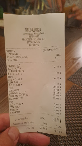 Read moreTaberna Degusta recupera y moderniza el concepto de la taberna, del bar. En un local de pequeñas dimensiones, al lado de la estación de Avenida de América, ofrecen una comida de corte clásico en formato de raciones y tapas. En la carta aparecen platos conocidos por todos, como el salmorejo, las croquetas, las gambas al ajillo, foie, tortillas o bravas.