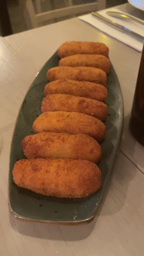 Pedimos media ración de croquetas de jamón para probarlas y tenían un sabor intenso a jamón y bechamel. La consistencia y la textura era perfecta.