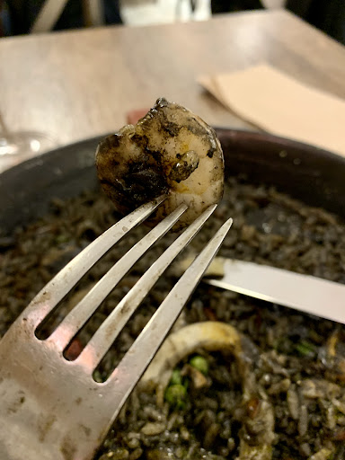 Por cierto, como bonus soy de Valencia, ni se os ocurra pedir una paella alli, eso no es paella, es un arroz que hacen alli, con los calamares que rebozan pero sin rebozado, y hecho deprisa con caldo y cosas que le hechan,en un receptaculo que es una paella mini, paella mini, pero que de paella tiene eso, el receptaculo y nada mas, ni la...