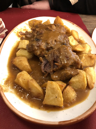 Whilst meandering Madrid late at night (23:00), looking for a place for dinner that was not only still open but also had a crowd (to let us know, visually, if the place was popular), we came across La Española. We immediately sat down, ordered two cervezas (received complimentary tapas), jamón (prosciutto), patatas bravas and slow roasted oxtail. This was our first time ordering and enjoying the famous jamón that everyone seems to rave about and now we know why! The jamón is much more flavorful, fresh and scrumptious that what we are used to in the U.S. It is served on a platter with mini baguette crostinis and somehow the meat is so tender, it feels like it melts in your mouth! We would definitely recommend this dish anywhere you go throughout Spain! The patatas bravas is a side dish composed of roasted potatoes topped with a spicy red salsa. This is a dish you will find on just about every single restaurant menu you come across in Spain as it is a staple and quite delicious. The salsa has just enough heat, the potatoes are cooked perfectly and it is filling. Lastly, the slow roasted oxtail was rich and savory. The dish was composed of three oxtail servings over a bed of roasted potatoes and the flavors were decent but not extraordinary. I would say that you have to be vocal when it comes to this place if you want anything from the servers, but after having encountered this throughout our travels in Spain, it seems to be customary to do so. The atmosphere is a bit noisy, but that also seems to be the standard for any restaurant, especially eating out so late. Our server spoke a little English, which helped us out a little bit throughout our dinner experience. Pro Tip: - Be assertive - Learn their language - Pay cash (faster and easier)