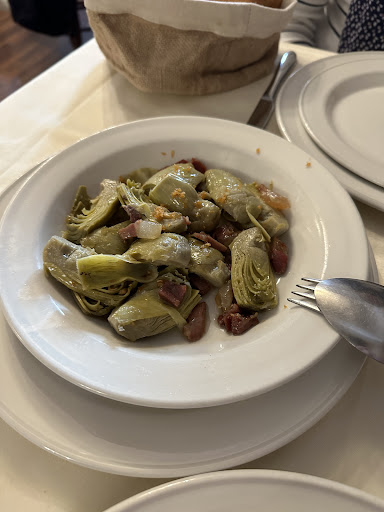 Es un buen sitio para tomar aperitivo, pero en cuanto a restaurante ha dejado un poquito que desear, nos dijeron que tenían alcachofas en temporada, que eran flor de alcachofa con jamón, las pedimos y eran unas simples alcachofas, guisadas y no en forma de flor, por supuesto, es un pequeño feo detalle, luego pedimos anchoas que esas si que estaban muy ricas, luego la especialidad sito es bacalao, lo pediremos y era bacalao normalito, tampoco era para tirar cohetes, para nuestro gusto un poco seco, y luego pedimos un, textualmente en la carta. solomillo de ternera a la parrilla con sal gorda, y efectivamente era solomillo con sal gorda, pero rociado de miel, primero, para mi gusto la miel no le pega el solomillo, segundo eso se tiene que advertir porque la persona puede que no le guste la miel o ser intolerante y tendría que haber devuelto el plato. Resumiendo, con eso, cinco cervezas, y una cuajada, 95 €, también para nuestro gusto un...