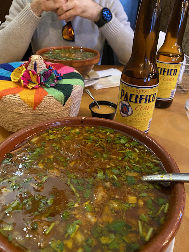 Buen sitio, pero le falta algo. Fuimos a probar la birria que por cierto está riquísima, pero siento que al personal le faltan un par de cosas a tener en cuenta. Éramos una pareja y pedimos la birria para dos, preguntamos si venían con las tortillas para hacer tacos o había que pedirlas aparte. Agradablemente nos dijeron que ya venía todo completo, pero cuando vino nos damos cuenta de que solo hay 3 tortillas. Repito, éramos una pareja. Se que es una tontería pero es agradable ir a un restaurante y que te sirvan en cuestión a si vas en pareja, solo, en grupo, etc, por eso yo les recomiendo quizás empezar a poner cantidades pares o si no, mirar a quien estáis sirviendo. También, he de decir que me parece poca cantidad de tortillas, supongo que está pensado para que se lo coma una sola persona pero repito, está bien fijarse en a quien o quienes estás sirviendo.