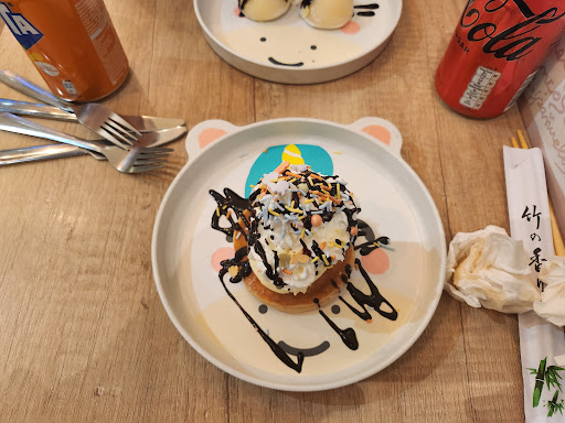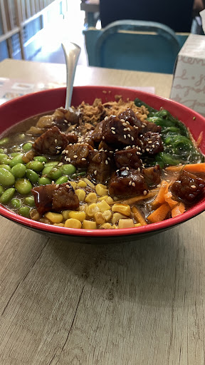 Read moreSuper pequeñito así q ve pronto o reserva ,y aun así ve pronto, sobre todo en fin de semana. El local esta ambientado en el dibujo animado Shin-Chan. Entre semana tiene un menú por 9.90 que consiste en una BEBIDA (puede ser cerveza) ENTRANTE ( 2 trozos de pollo crujiente con patatas, 2 gyozas, brochetas, 2 bolitas de pulpo que están super buenas..) UN BOLW en el que eliges tu los ingredientes : 1 base (arroz, tallarines o ramen) 1 proteína (pollo, pato, salmón, tape...) 4 ingredientes de acompañamiento (zanahoria, cebolla, brócoli, adámame ,huevo...) y 2 salsas( yo probe la combinación de Tereyaki con ciruela china y me flipo, además luego en mesa le puedes añadir picante). Los postres no están incluidos y bueno... aquí flojea un poco. La tarta de macha bien, no sabe a te mucho pero parece más casera que el resto que, creo que son precocinados, aunque los Mochis de mango estaban buenos. Si van en día sin menú sale un pelín más caro aunque la cantidad de los entrantes es mayor, más o menos 15-20 euros. Estos días los bowl son los de la carta. La puntación es alta, pero siempre considerando la relación calidad precio, es decir, no es el sitio más elegante ni vas a comer comida de una estrella Michelin pero tiene casi un 10 en ser un 3Bs (Bueno, Bonito, Barato). Otra cosa que he leído por aquí es que las niñas que andan por el local, supongo que las hijas del dueño, están allí trabajando. En mi caso he de decir que las nenas aparecieron y se cogieron la comida, comieron y se pusieron hacer deberes muy series y formales, que no tristes. Pero vamos que se ve que las cuidan y quieren y nada de explotación como han...