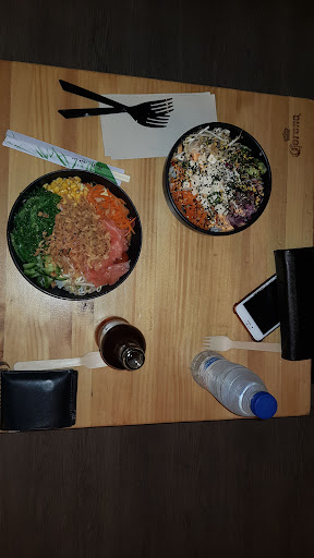 Los Bowls se basan en una mezcla de proteina (Salmón, Atún, Pez Mantequilla, Tofu, combinar varias de estas..) con Piña, Aguacate, Mango, Cebolla, Pimiento.. Hay tropecientas mil combinaciones. Si no quieres inventar tienes ya algunos prehechos con Trufa,Salsa Teriyaki, versión Fitness.. es bastante completo.