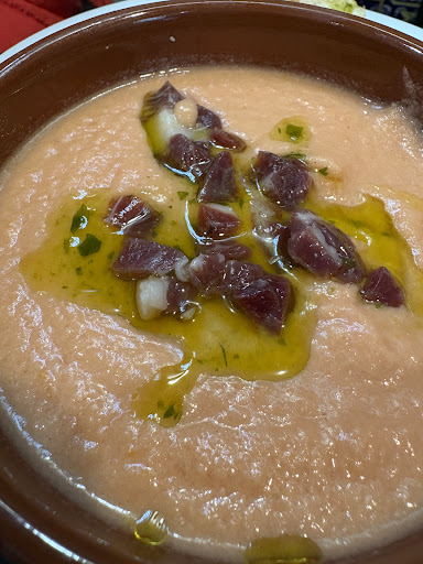 Pero una vez probé los platos del menú fue decepcionante, quizás por mi elección (aunque me consta que el Salmorejo tampoco estaba rico). Yo pedí huevo frito con pisto (este fue el mejor y simplemente estaba normal), el segundo fue san jacobos y no eran caseros si no congelados y los postres (que creo recordar que yo pedí arroz con leche) eran todos de supermercado :(