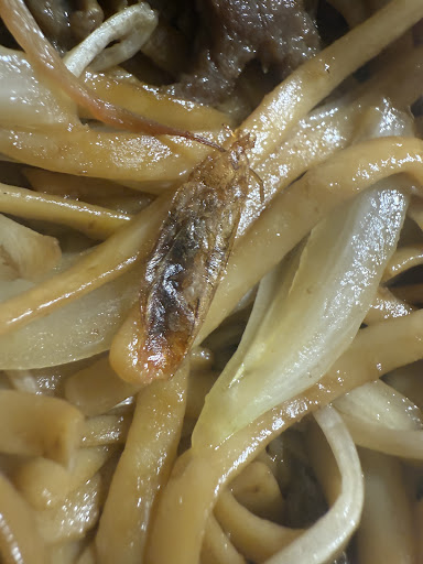 Realicé un pedido a domicilio el 08/08/2025 a través de Glovo a este restaurante y, tras consumir un plato de tallarines fritos con ternera, encontré el cuerpo cocido de una cucaracha.