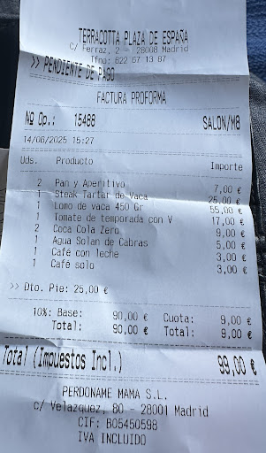 We ordered the Arroz negro de calamar con alioli for two, along with a Presa Ibérica. Portions were fair and the dishes had good flavor, though nothing particularly memorable. Our total came to around 61 EUR with drinks, helped by a discount through The Fork.