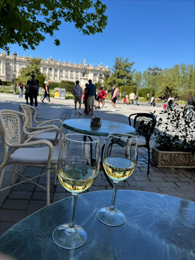 We had an Albariño that was absolutely delicious, and the view of Plaza de Oriente was stunning. Even though we didn’t eat there due to the power outage, I’d definitely recommend this place—especially if you’re looking for a relaxing spot to enjoy a coffee or a drink with a view. I imagine that under normal conditions, it would also be a lovely place for a meal. The inside looked charming too, but we sat outside and had a...