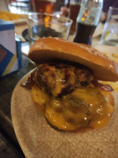 Smashburguer. Esta no cumple ni de lejos la característica principal de una hamburguesa Smash, crujiente por fuera y jugosa por dentro. Echar mucha salsa para que chorree no mejora la experiencia.