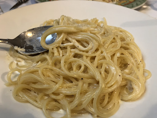 En contra: No tienen tronas para bebés, por lo que no lo recomendamos para familias que la necesiten. Pedimos algo de pasta con tomate para nuestro bebé (que literalmente come 4 macarrones). Nos “sugieren” que pidamos una media ración y que nos la comamos los adultos. Nos pareció un sinsentido. A momentos notamos un cierto clasismo. El gerente sirvió el queso directamente a la pasta de algunos comensales (a nosotros no). A otros comensales les indicó que podían sentarse en varias mesas o “donde quisieran” mientras que a nosotros nos indicaron dos mesas (“o esta o esta”). El cobro del servicio a mesa (1,5€/persona). ¿Qué se paga? ¿El pan? ¿El cubierto? Nadie te pregunta ni te indica que te cobrarán. Que en Italia sea práctica normal no significa que deba serlo en España. Si eres una persona aprensiva con tema COVID, no recomendamos el local en sí. Angosto, mesas juntas,…